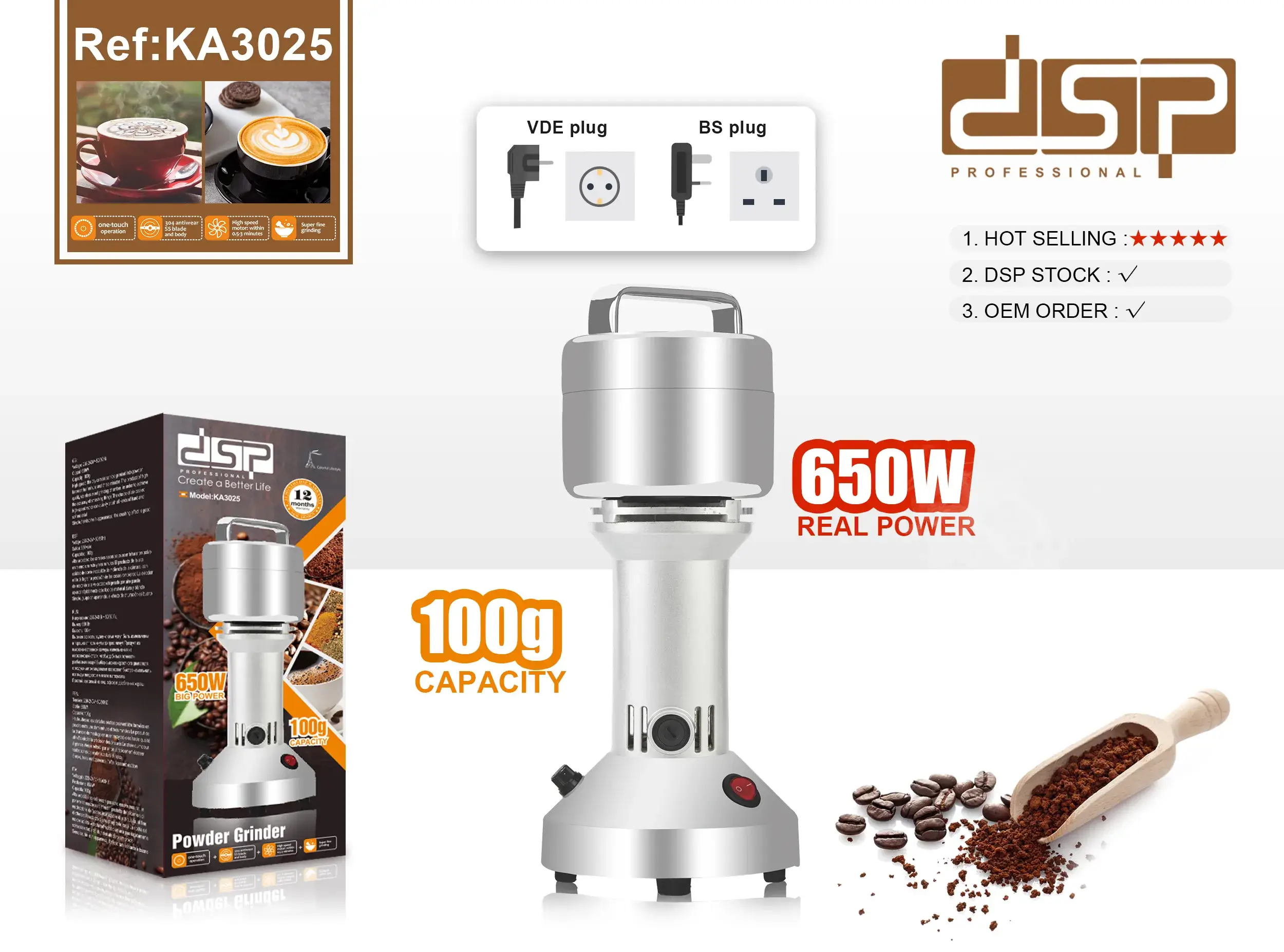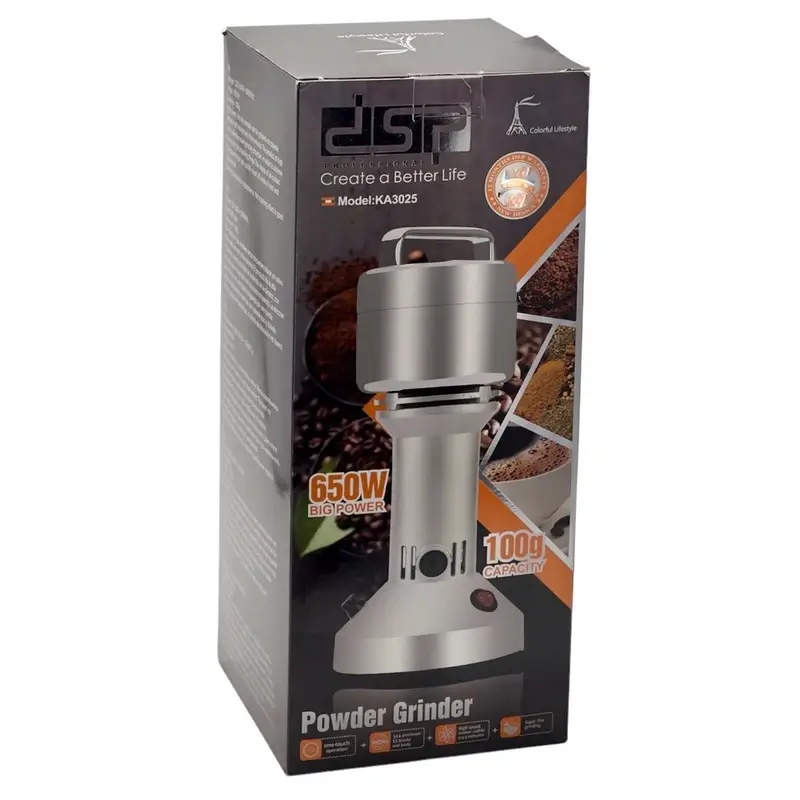 آسیاب حرفه ای دی اس پی KA3025 دارای موتور پر قدرت 650 وات می باشد . همچنین آسیاب پر قدرت DSP دارای کلید حرارتی جهت خاموش کردن اتوماتیک دستگاه , زمانی که به دستگاه فشار بیش از حد بیاید ، می باشد . بدنه تمام استیل بهداشتی , هم زیبایی ظاهر دستگاه را بالا برده است هم تمیز نمودن آن را آسان کرده است . سیستم ترکیبی تیغه برای آسیاب کردن یا خرد کردن مواد با بهترین عملکرد را دارا می باشد . برای استفاده در عطاری ها جهت پودر نمودن انواع ادویه، هل، هلیله، دارچین، زنجبیل و غیره … مناسب می باشد . در آشپزخانه ها برای پودر نمودن هل ، پسته , لیمو ، زیره ، زعفران , گردو و … کاملا کاربردی می باشد . برای آزمایشگاه ها جهت خرد نمودن انواع مواد شیمیایی و گیاهی و …مناسب است .